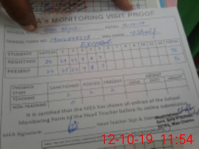 | Attendance Register | Head Teacher | MEA with School | Visit Proof |