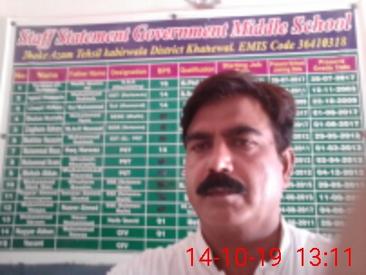 | District: KHANEWAL | Tehsil: KABIRWALA | Markaz: SALAR WAHIN - MALE | Level: Middle | |