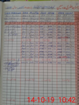 | CNIC | Full Name | Designation | R/C | Absence During Last Calender Month |