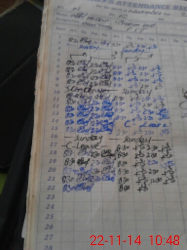 | CNIC | Full Name | Designation | R/C | Absence During Last Calender Month |