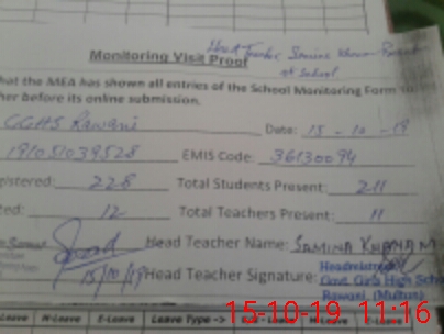 | EMIS Code: 36130094 | Name of School: GGHS RAWANI MULTAN | |||