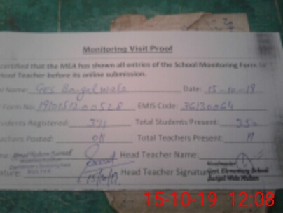 | EMIS Code: 36130064 | Name of School: GES BANGAL WALA P/O KOT ABBAS MELA RAM | |||