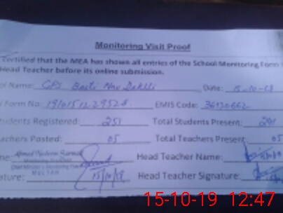 | Certified that this School was Inspected by the Undersigned MEA/DMO Today and the Information Stated Above is as Per Record. | |||||