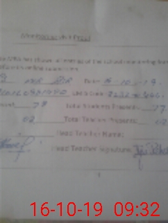 | Attendance Register | Head Teacher | MEA with School | Visit Proof |