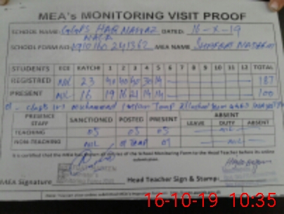| Attendance Register | Head Teacher | MEA with School | Visit Proof |