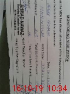 | Monitoring Date: 16-10-2019 | Start Time: 16-10-2019 10:13 AM | End Time: 16-10-2019 10:37 AM | Name of MEA: AH**** NA**** (r**** | |