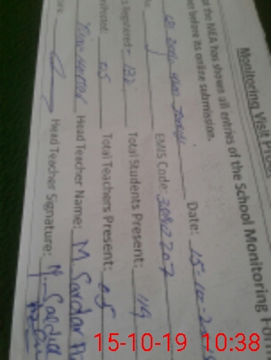 | Attendance Register | Head Teacher | MEA with School | Visit Proof |