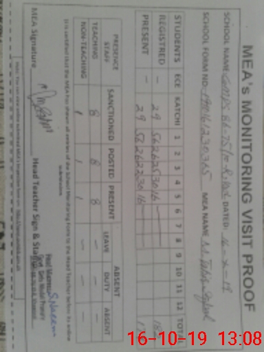 | Certified that this School was Inspected by the Undersigned MEA/DMO Today and the Information Stated Above is as Per Record. | |||||