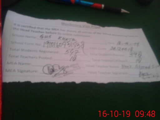 | EMIS Code: 36120018 | Name of School: GHS KHOJA P.O. KHOJA TEH. SHUJABAD DISTRICT MULTAN | |||