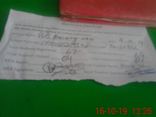 | Certified that this School was Inspected by the Undersigned MEA/DMO Today and the Information Stated Above is as Per Record. | |||||