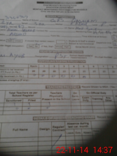 | Monitoring Date: 22-11-2014 | Start Time: 22-11-2014 02:25 PM | End Time: 22-11-2014 02:39 PM | Name of MEA: Ar**** Na**** | |