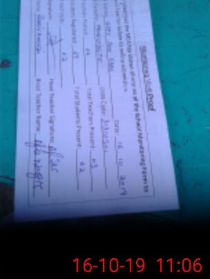 | Monitoring Date: 16-10-2019 | Start Time: 16-10-2019 10:12 AM | End Time: 16-10-2019 11:09 AM | Name of MEA: Za**** Hu**** | |