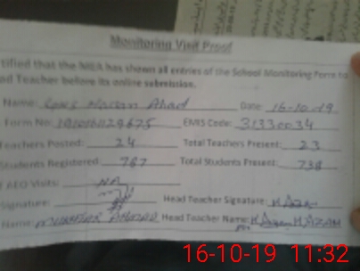 | Certified that this School was Inspected by the Undersigned MEA/DMO Today and the Information Stated Above is as Per Record. | |||||
