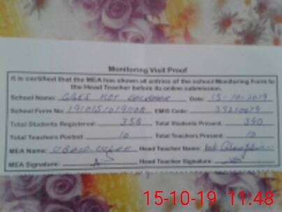 | Certified that this School was Inspected by the Undersigned MEA/DMO Today and the Information Stated Above is as Per Record. | |||||