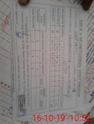 | Attendance Register | Head Teacher | MEA with School | Visit Proof |