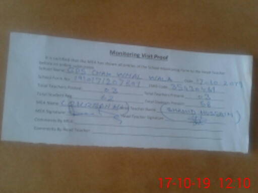 | EMIS Code: 35430461 | Name of School: GPS CHAK WAHL WALA | |||