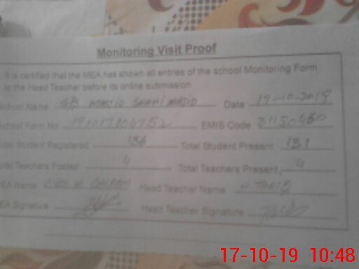 | EMIS Code: 31150450 | Name of School: GPS MASJID SHAHI MASHID | |||