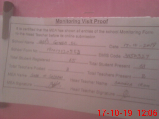 | Certified that this School was Inspected by the Undersigned MEA/DMO Today and the Information Stated Above is as Per Record. | |||||