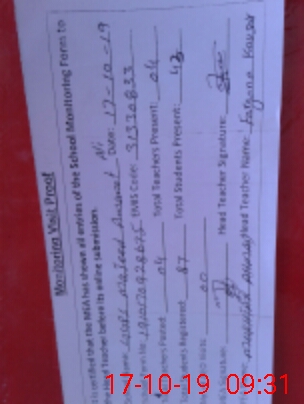 | Attendance Register | Head Teacher | MEA with School | Visit Proof |