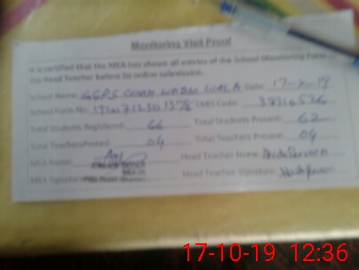 | Certified that this School was Inspected by the Undersigned MEA/DMO Today and the Information Stated Above is as Per Record. | |||||