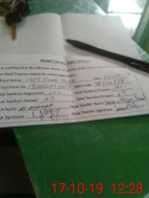 | Attendance Register | Head Teacher | MEA with School | Visit Proof |