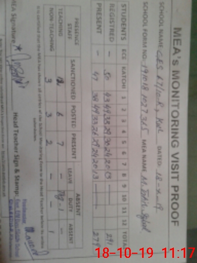 | Monitoring Date: 18-10-2019 | Start Time: 18-10-2019 10:27 AM | End Time: 18-10-2019 11:20 AM | Name of MEA: M.Ta**** Iq**** (S**** | |
