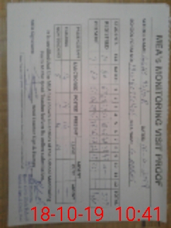 | Monitoring Date: 18-10-2019 | Start Time: 18-10-2019 08:56 AM | End Time: 18-10-2019 10:41 AM | Name of MEA: GH**** AB**** | |