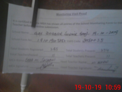 | Certified that this School was Inspected by the Undersigned MEA/DMO Today and the Information Stated Above is as Per Record. | |||||