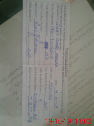| Certified that this School was Inspected by the Undersigned MEA/DMO Today and the Information Stated Above is as Per Record. | |||||