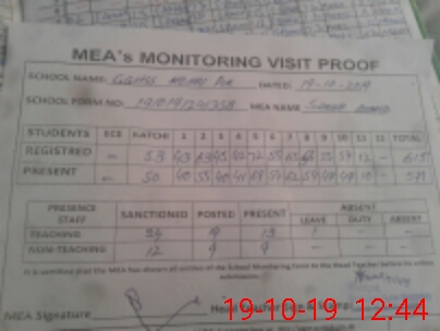 | Attendance Register | Head Teacher | MEA with School | Visit Proof |