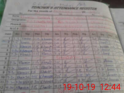 | CNIC | Full Name | Designation | R/C | Absence During Last Calender Month |