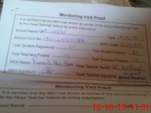 | Certified that this School was Inspected by the Undersigned MEA/DMO Today and the Information Stated Above is as Per Record. | |||||
