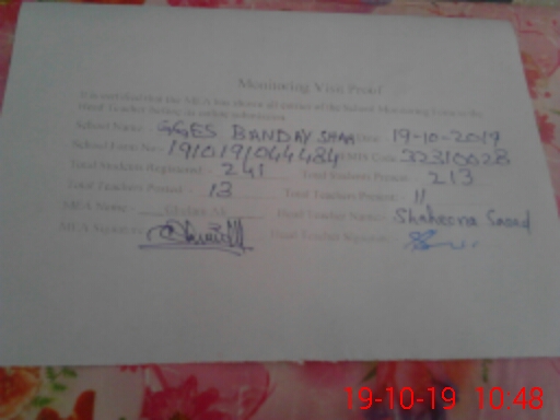 | EMIS Code: 32310028 | Name of School: GGES BANDAY SHAH | |||