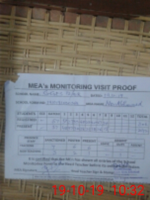 | Attendance Register | Head Teacher | MEA with School | Visit Proof |