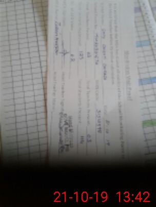 | Monitoring Date: 21-10-2019 | Start Time: 21-10-2019 01:21 PM | End Time: 21-10-2019 02:11 PM | Name of MEA: Za**** Hu**** | |