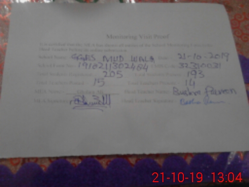 | Certified that this School was Inspected by the Undersigned MEA/DMO Today and the Information Stated Above is as Per Record. | |||||