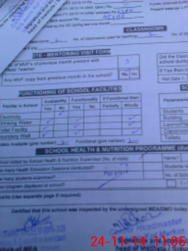 | Attendance Register | Head Teacher | MEA with School | Visit Proof |