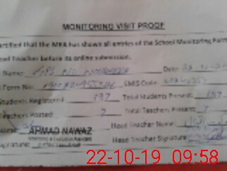 | Certified that this School was Inspected by the Undersigned MEA/DMO Today and the Information Stated Above is as Per Record. | |||||