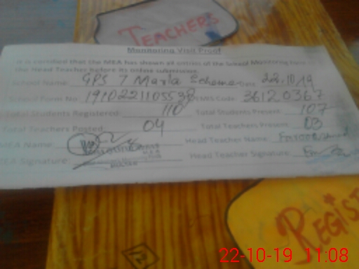 | Attendance Register | Head Teacher | MEA with School | Visit Proof |