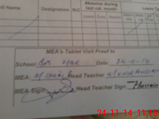 | Attendance Register | Head Teacher | MEA with School | Visit Proof |