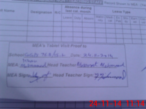 | Attendance Register | Head Teacher | MEA with School | Visit Proof |