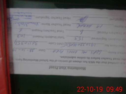 | Certified that this School was Inspected by the Undersigned MEA/DMO Today and the Information Stated Above is as Per Record. | |||||