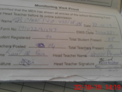 | Attendance Register | Head Teacher | MEA with School | Visit Proof |
