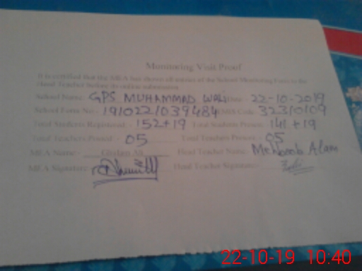| EMIS Code: 32310109 | Name of School: GPS MUHAMMAD WALI | |||