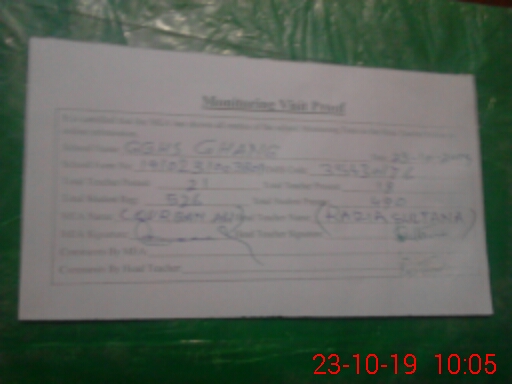 | Attendance Register | Head Teacher | MEA with School | Visit Proof |