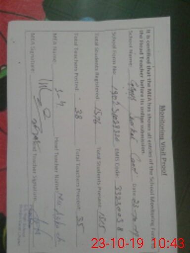 | Certified that this School was Inspected by the Undersigned MEA/DMO Today and the Information Stated Above is as Per Record. | |||||