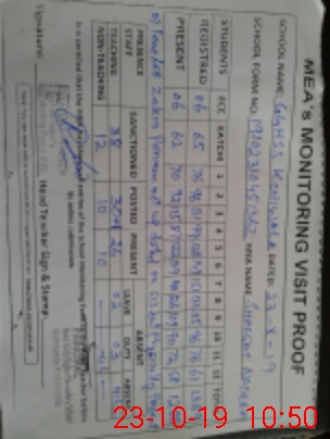 | Monitoring Date: 23-10-2019 | Start Time: 23-10-2019 09:07 AM | End Time: 23-10-2019 10:51 AM | Name of MEA: Sh**** Na**** | |