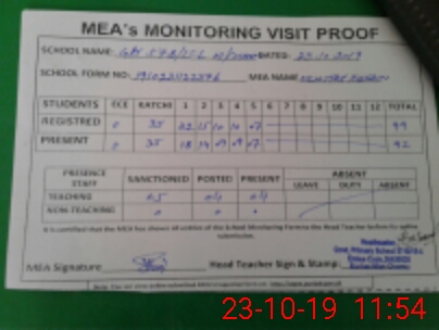 | Attendance Register | Head Teacher | MEA with School | Visit Proof |