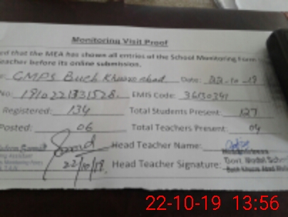 | Certified that this School was Inspected by the Undersigned MEA/DMO Today and the Information Stated Above is as Per Record. | |||||