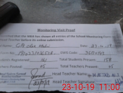 | Certified that this School was Inspected by the Undersigned MEA/DMO Today and the Information Stated Above is as Per Record. | |||||